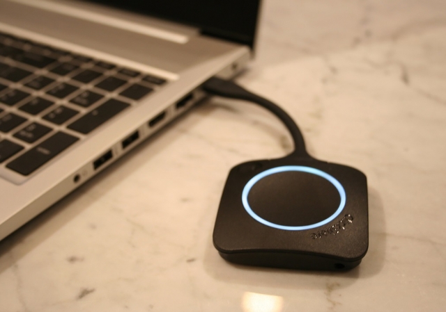 Beide ruimtes zijn uitgerust met onze ClickShare Conference oplossing: een klein apparaat dat via USB verbinding maakt met je laptop. Wanneer je een ruimte binnen loopt, gaat zitten en de ClickShare usb-c button in de laptop steekt, worden automatisch de camera en de audio apparatuur aangezet waardoor je meteen klaar bent voor de meeting.
