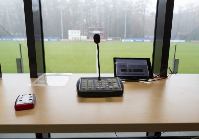 • Geluidsinstallatie op de tribune en de velden