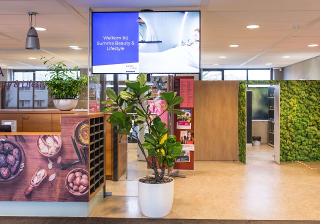 Over de locaties van het Summa College verspreid maken vestigingen gebruik van monitoren die studenten op de hoogte houden van het laatste nieuws over actuele roosterwijzigingen. Bij de balies van de verschillende opleidingen op Sterrenlaan 4 heeft Mansveld AVC digital signage monitoren geïnstalleerd.